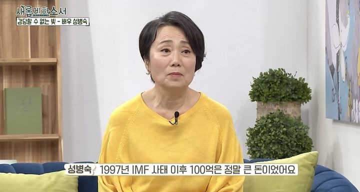 성병숙 두번째 전남편 직업은 사업가로 성병숙 재혼 이유에 대해서 성병숙은 딸이 "다른 아이들은 아빠가 있는데 나는 없다"며 울며 돌아오던 모습을 떠올리며 "아이에게 아빠를 만들어주고 싶었다"고 두 번째 결혼을 결심한 이유에 대해 말했다.결혼 초반에는 남편 사업이 잘돼 넉넉하게 살았지만, IMF 시기 한순간에 사업이 무너지며 압구정 70평대 아파트에서 쫓겨나는 상황까지 겪었다며 “1997년이 인생의 전환점이었다. 나라가 IMF일 때 나도 전쟁 같았다”고 말했다.그후 전남편은 “한 달 후 돌아오겠다”며 해외에 나간 뒤 지금까지 돌아오지 않았다고. 성병숙은 “회사 빚이 100억이었다. 내가 다 해결할 테니 걱정하지 말라며 믿고 보냈는데 끝내 돌아오지 않았다”며 아픈 과거를 회상 하기도 했다.